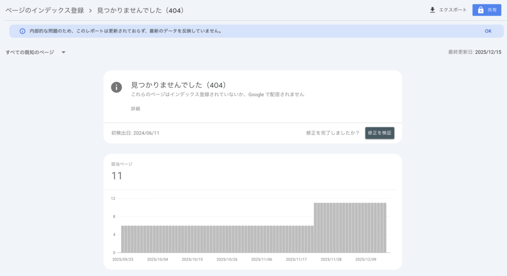 - 表示されたレポートの中から「見つかりませんでした(404)」をクリック