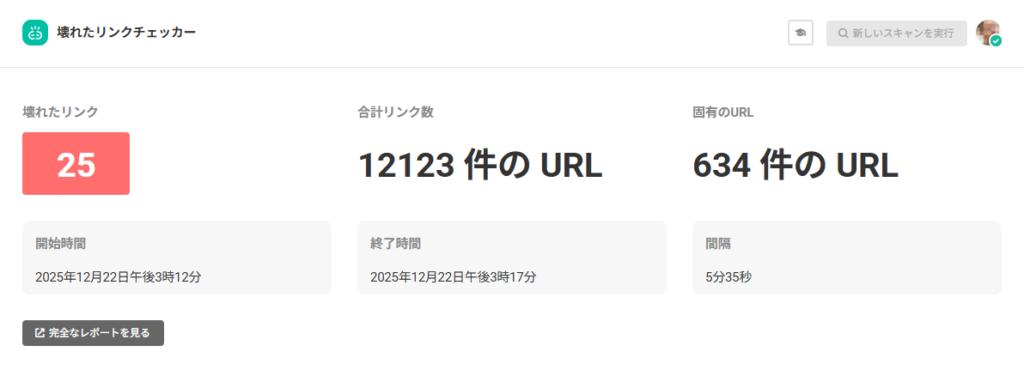Broken Link Checkerでリンク切れを確認する手順は以下のとおりです。